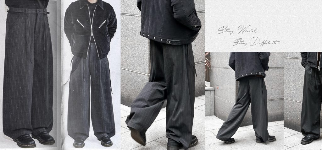 • Striped Pleated Wide Trousers
